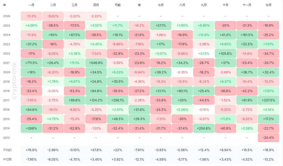 自2021年5月见顶后,狗狗币开启漫长下跌,4月表现也不再一路坦途:上涨年份2021年、2023年。下跌年份2022年、2024年(去年4月暴跌近40%)。总体来看,狗狗币4月走势相对平缓,波动不算极端,多空博弈特征明显。