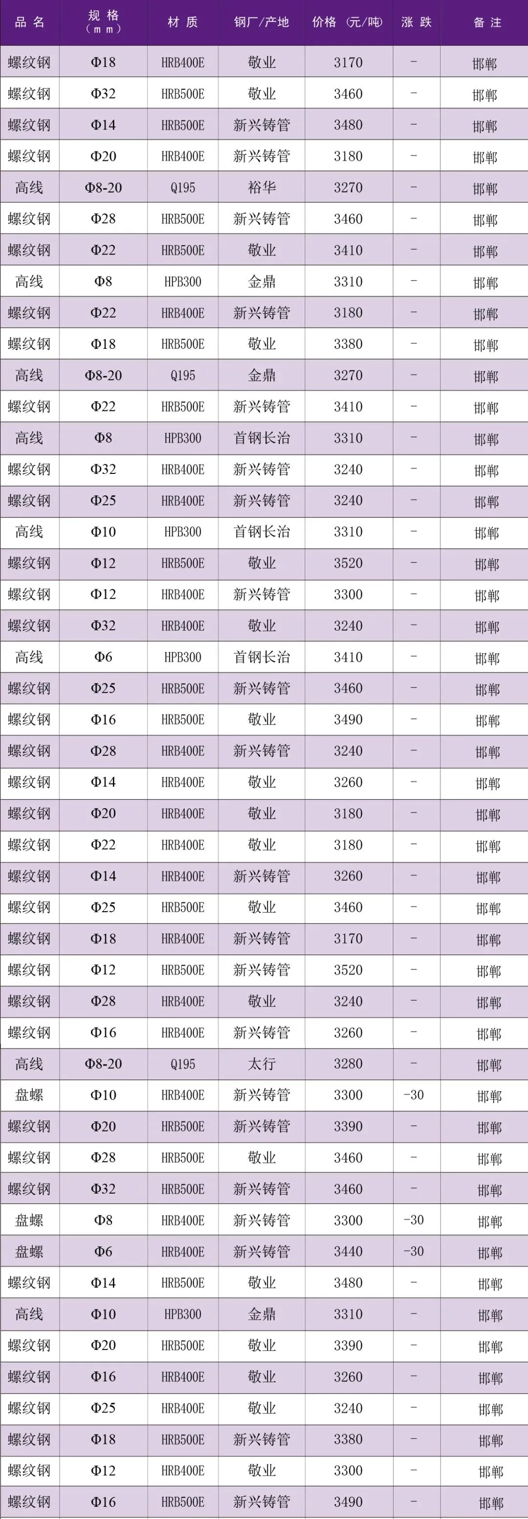 >【价格资讯】4月2日邯郸市场建筑钢材价格行情