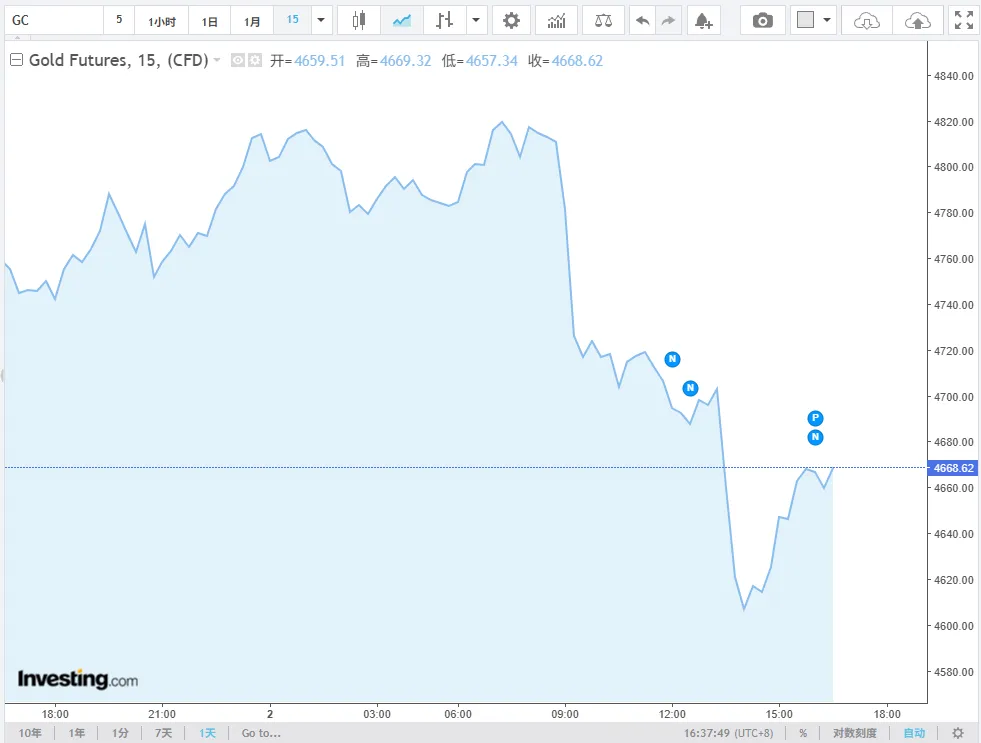 - 主要特征:内外盘金价同步回调,国际金价跌破4700美元关口,技术面呈现回调态势