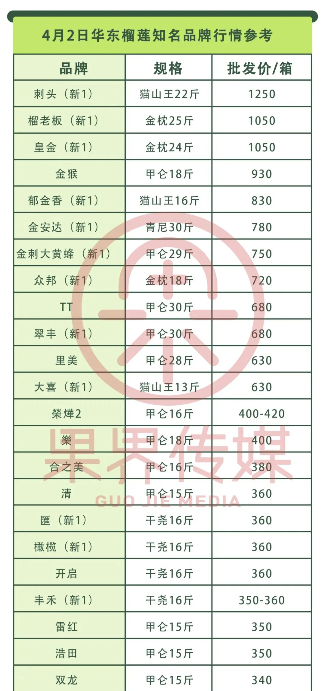 >4月2日果界传媒华东一级市场每日水果行情