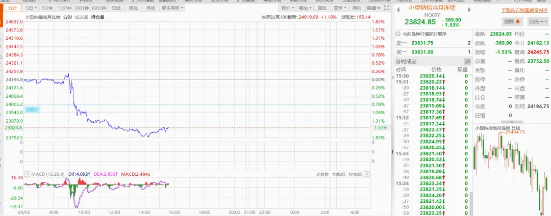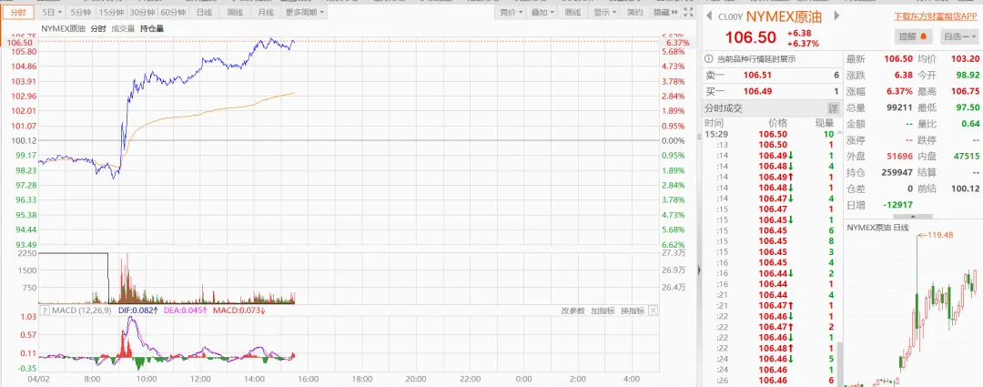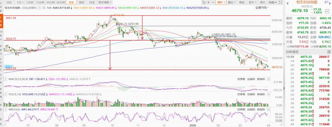 欧洲三大股指:截至写稿截图,仍在交易中,当前都跌了一个多点。NYMEX原油:飙升6%+,已经106.5美元/盎司了!而我们的大A:上证指数跌0.74%,深证成指跌1.6%,双创跌超2%。北证50在3月跌了18.79%后,4月终于有不一样的表现,但还是被拖累,从早上的涨2.66%到收盘的微涨0.3%。下跌家数又是4300多家,贵金属、通信服务、元件、房地产服务、IT服务、半导体等领跌,石油、医药、能源金属等领涨。银行今天有出来护盘,所以大盘指数仍然在3900点上方。港股:科技类继续随大势下跌,恒医近来因为创新药的原因韧性十足,今天逆势微红收盘。恒科:今天再次来到4600点附近,所以决定开始补仓,为接下来可能做T的机会做准备。恒互:走势跟恒科基本同步,头铁的也可以开启逐步补仓模式。考虑到可用资金有限,持有免手续费期限,以及资金集中等因素,这波我选择放弃加恒互,资金向恒科倾斜。恒医:今天来到上方压力位,其实今天应该卖出一些的,等回调后可以做一个日外的反T,但考虑到仓位并不多,所以选择不动。拉萨军团做T的能力太强了,LKFW差2分钱都不让涨停,暴力拉升到14.38(+9.85%)就砸下来,到收盘回吐6个点!!!DYCY也很神奇,主力只拉了不到15个点就跌下来,连20个点都没有,如果这是洗盘,主力也是够狠的了。