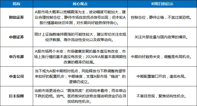 对明日市场的启示:申万宏源策略指出,当前A股市场有两个未变——市场健康发展的基本盘没有改变(稳市机制日趋完善),市场上涨行情的基本盘没有改变(2026年A股基本面周期性改善的概率仍较高)。外部扰动虽然持续,但对A股的边际冲击正在递减。