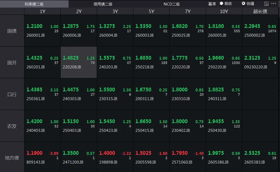 10年期国开债“25国开20”收益率下行0.10bp至1.9650%,10年期国债“26附息国债05”下行0.20bp至1.8165%,30年期超长特别国债“25超长特别国债02”上行0.1bp至2.2970%,短券偏暖、长券承压,市场缺乏破局因素。