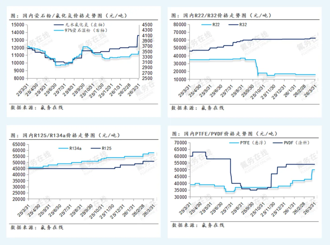 【氟化工】3月30日市场行情简报!涨势再起!原料传导全链产品调价