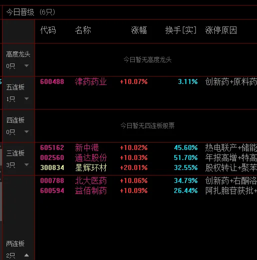 市场最高标来到五板的津药药业,一字走加速,上次的龙头美诺华四进五时走加速后五进六断板,明天盘中观察能否破局。