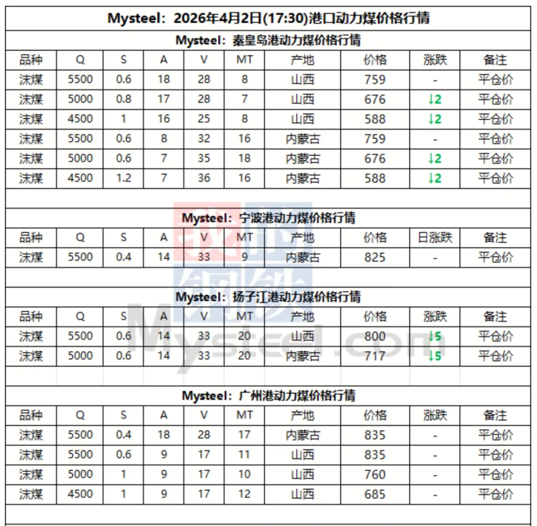 2日港口动力煤报价弱稳运行。目前贸易商降价出货意愿较高,报价小幅下调。但现阶段部分电厂检修,下游需求释放较弱,少量询货压价为主,市场交投僵持,成交稀少且重心下移。市场操作仍以谨慎观望为主。后市需持续关注下游需求变化及港口实际成交情况。