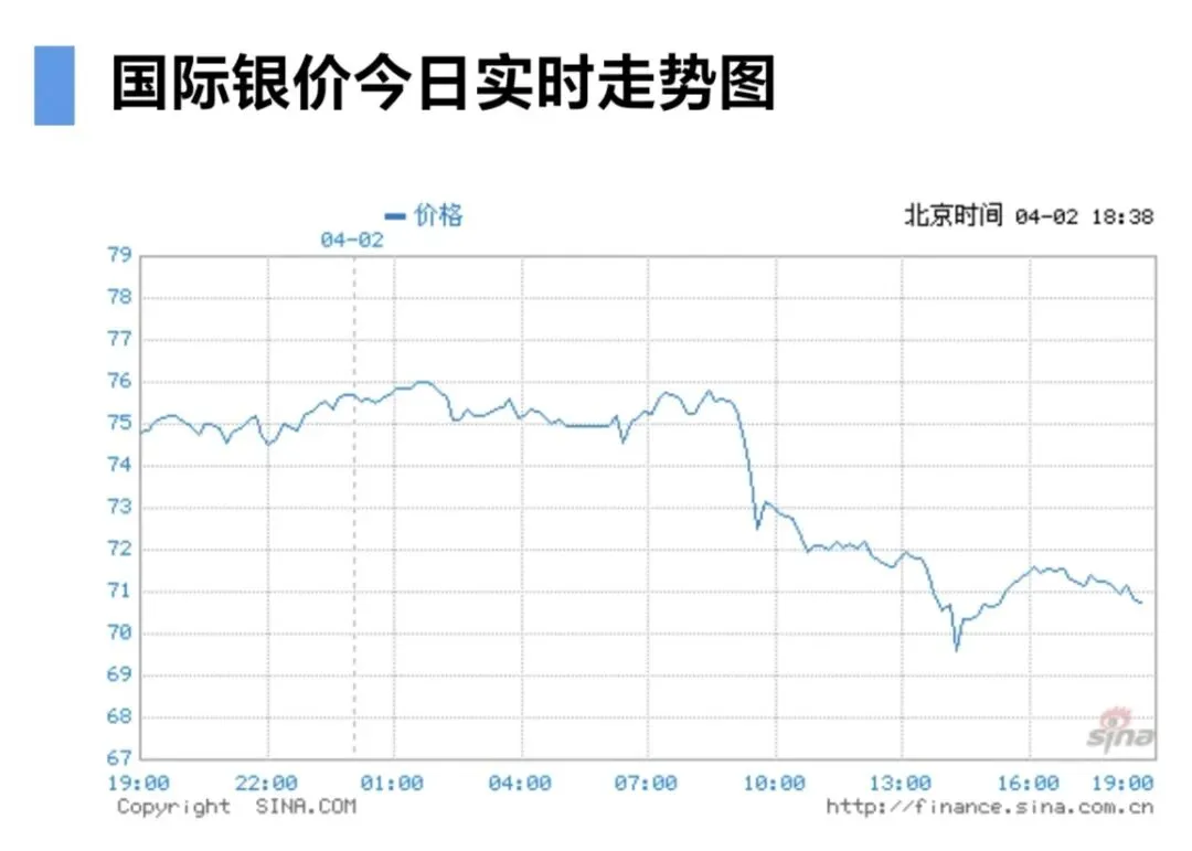 | 国际银价 (现货) | 71.26美元/盎司 | -5.07% |