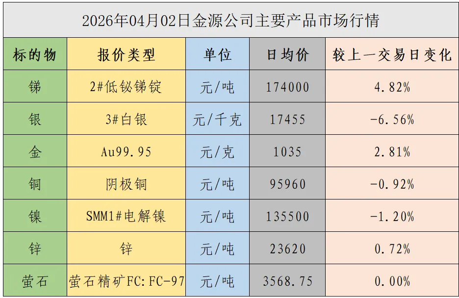 >今日行情|2026年4月2日金源公司主要产品市场行情