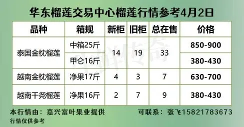 >4月2日华东水果市场榴莲、火龙果行情参考