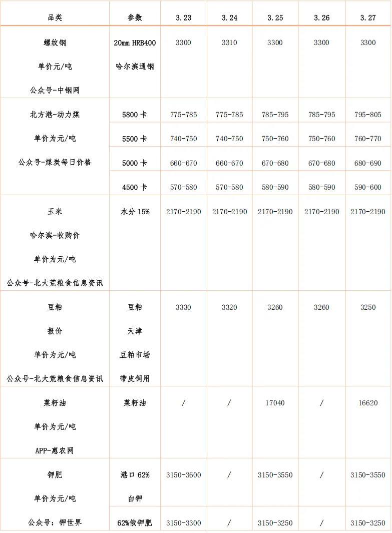 煤炭方面,上周国内动力煤市场呈现“淡季不淡、稳中有升”特征,北方港5800卡动力煤报价从775-785元/吨窄幅上行至795-805元/吨,5500卡等主流热值价格亦同步小幅上涨。主要原因:一是印尼等主产国减产,国际煤炭供应收缩,进口煤成本抬升;二是中东局势推高国际能源价格,全球能源替代需求增加,带动国内煤价上行;三是国内工业生产复苏,火电、钢铁等用煤需求保持韧性。上周煤炭价格上涨主要是电厂补库与化工、建材行业需求回暖的共同作用。短期煤炭价格或延续稳中有升趋势,迎峰度夏前或进一步上行;需关注国内稳价调控政策加码、新能源出力超预期替代煤炭需求等风险。