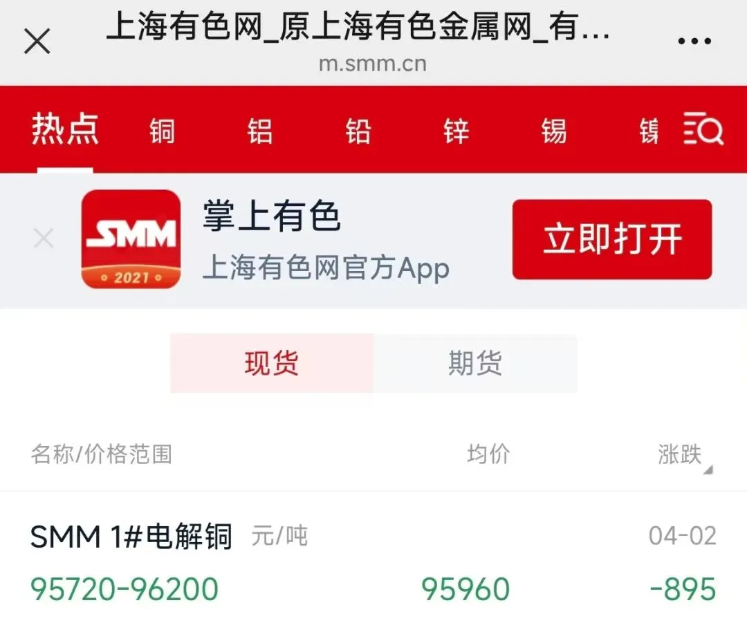 今天铜价实时查询!现货铜价格行情走势图今日回收多少钱一斤(4月2日)