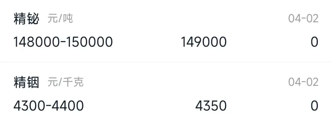 2026年4月2日稀土价格行情