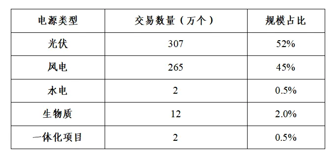 从不同电源类型绿证交易规模情况看,广州电力交易中心平台光伏项目交易数量最多,交易规模为307万个,占交易总量52%,环比增长23%。风电项目次之,交易规模为265万个,占交易总量的45%,环比下降13%;