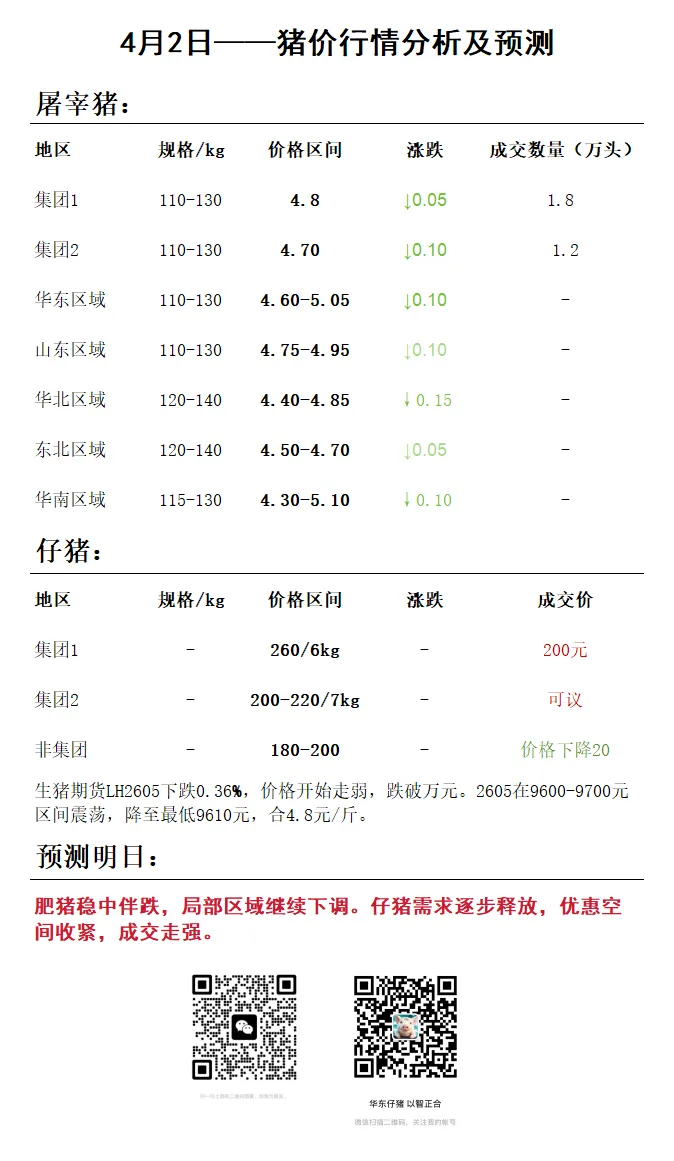 河南锦堂牧业2026年4月3日猪价行情播报(偏弱调整!)