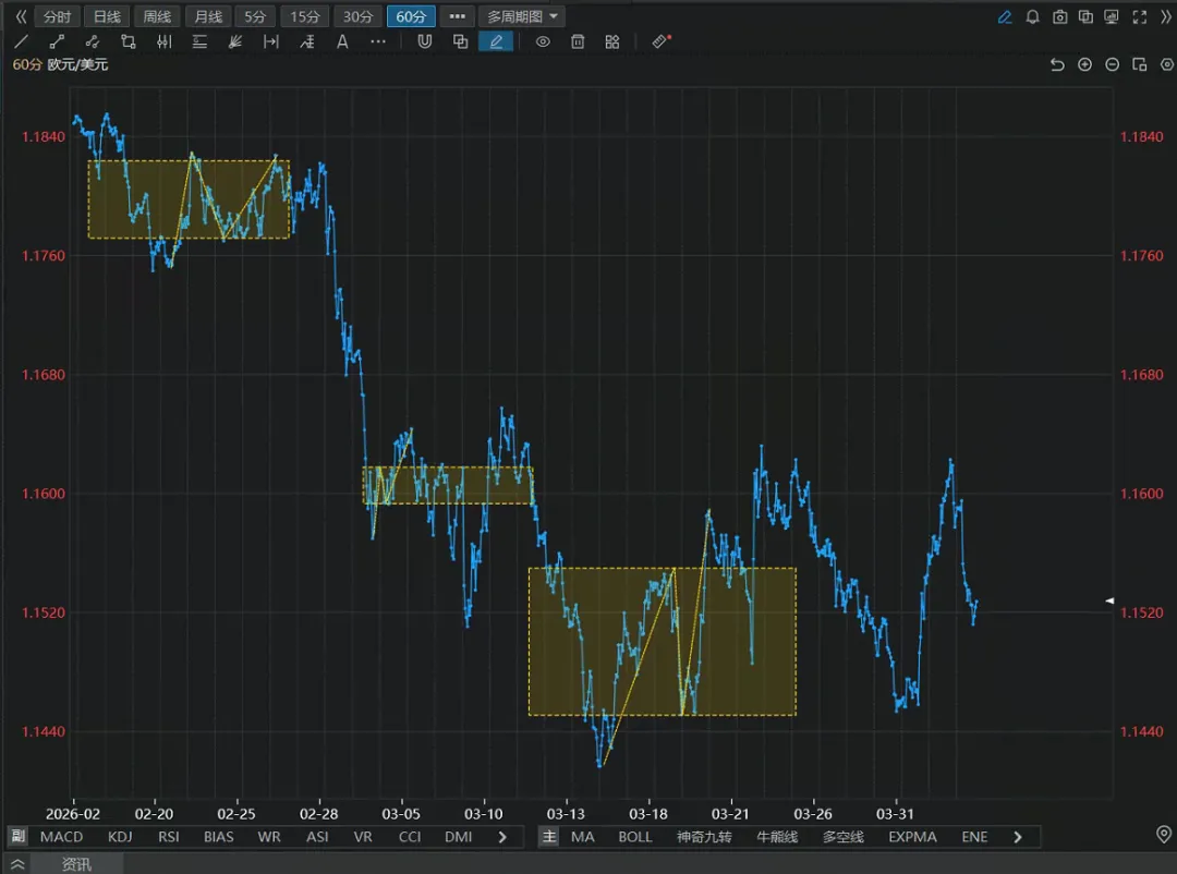 总结:反弹至 1.1540-1.1560 区域做空,止损 1.1580-1.1600,目标 1.1500→1.1470→1.1430。60 分钟趋势与日线一致,可以执行做空策略。