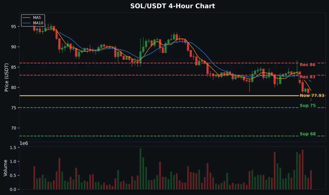 现价:76.93 USDT(24h -7.58%)今天领跌主流币,Drift Protocol 被黑 2.85 亿利空生态。但 75 是强支撑位置,这个位置不破还有反弹机会。75 附近可以轻仓试多,止损 72 下方。83 上方不追,等突破确认。跌破 68 加速下跌。