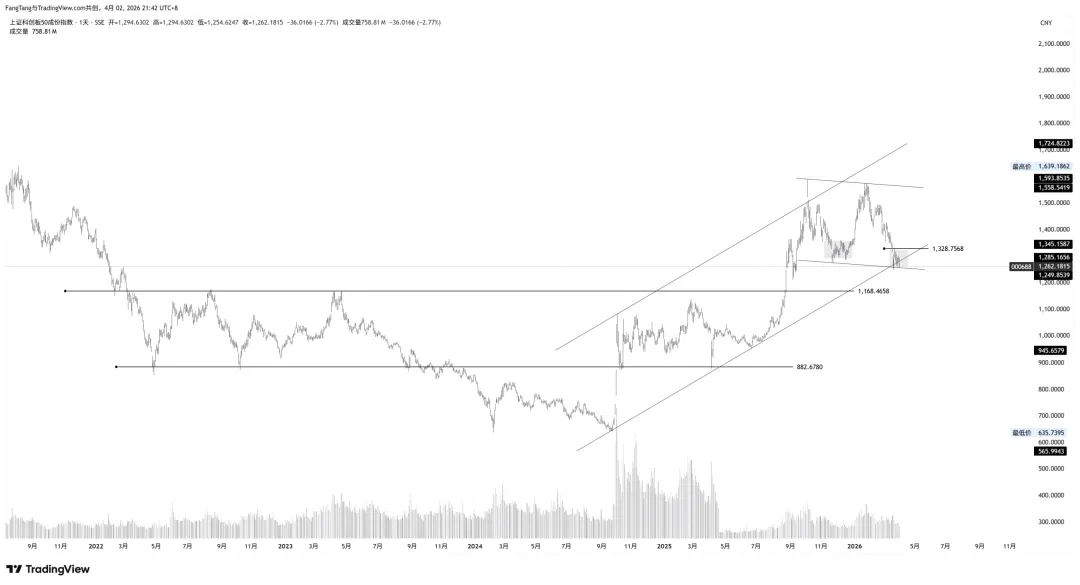 如果后续往上突破,站上站稳1330,那这个基本上就是摸到大级别低点了。这个可能性我觉得还是很大的,因为它的底部结构比较好。虽然它的估值确实很贵,但是科创板要谈梦想,不能谈估值!