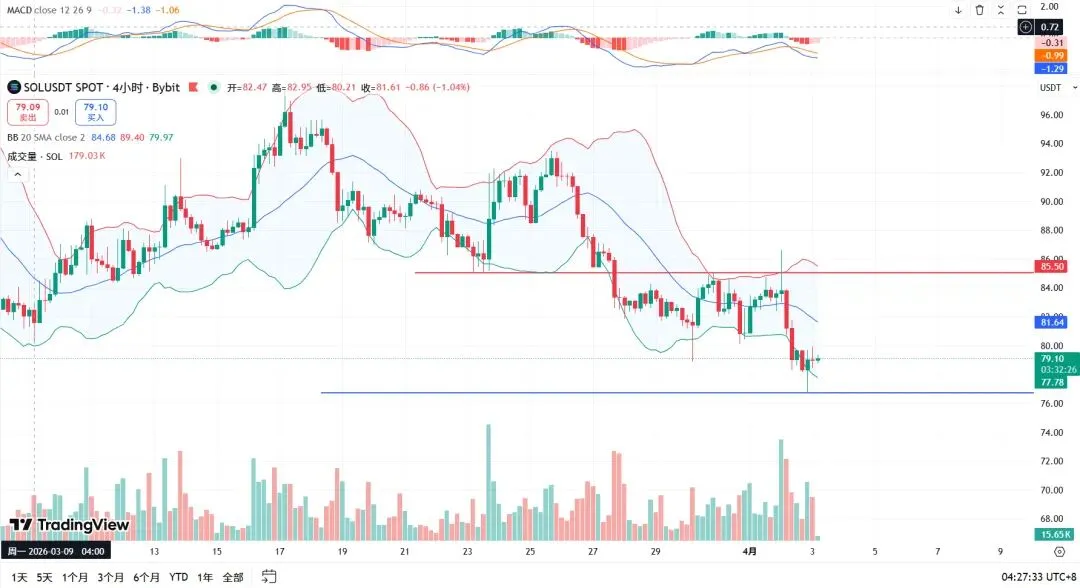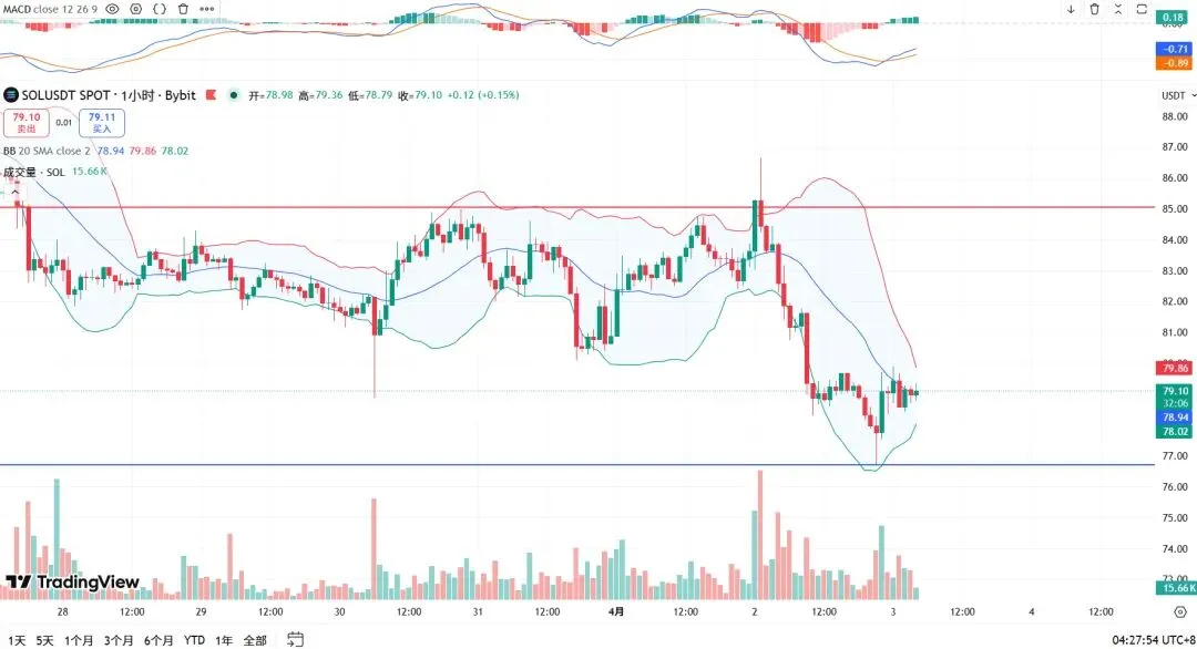 小时图布林带收窄大概率会有行情,需要观察布林带稳定下来之后,k线在均线上方活动还是下方,如果在上方择机做多,在下方继续看空。