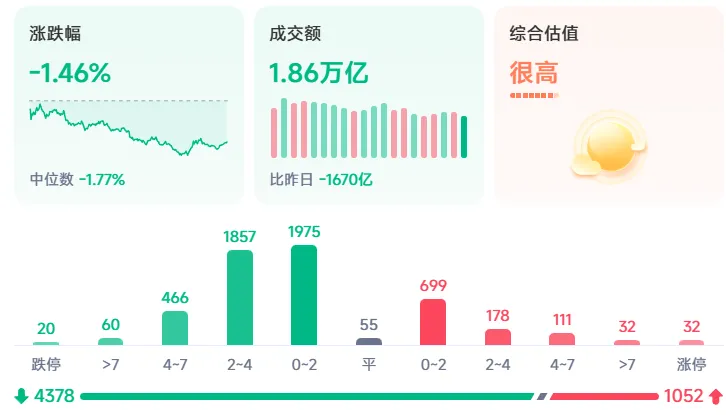 昨天刚从市场里赚回一辆车,今天直接给你干到只剩个车轱辘,这过山车坐得,心脏差点没扛住。全市场超4300只个股下跌,涨跌中位数-1.77%,涨停板只有32家,跌停却有20家,纯纯的普跌模式。