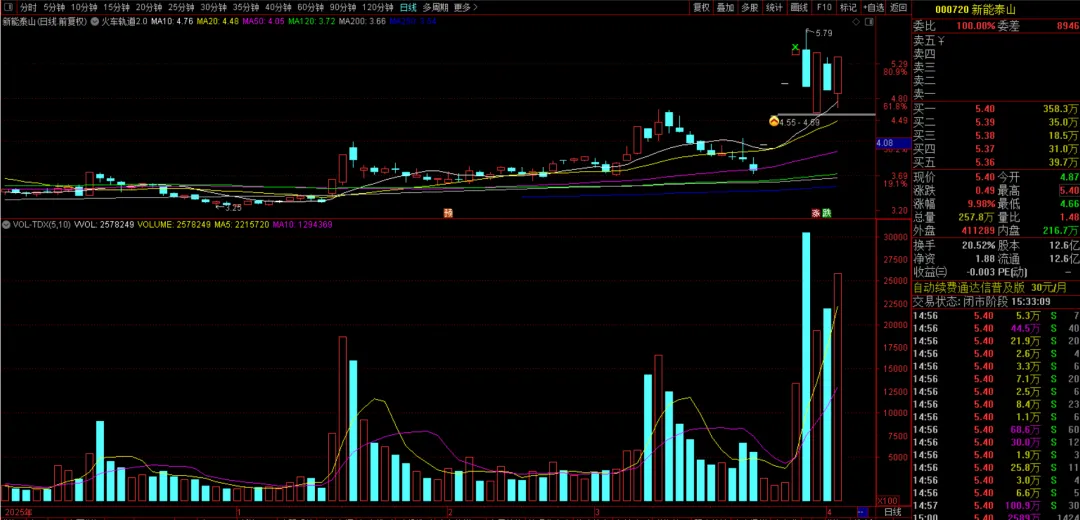 第三,游资动向。周四全市场逆势做多的游资少得可怜,只有新能泰山上,能看到几个熟悉的身影。龙虎榜数据显示,佛山系买入2.3个亿,成都系买入1个亿,作手新一买入0.83亿,三个人合计买了4.26亿,占了这只票全天成交额的31%,绝对的引导力量。但就算是这样,尾盘竞价还是被砸了2588万,涨停板上的封单最后只剩358万,差点没兜住,可见现在资金有多谨慎。