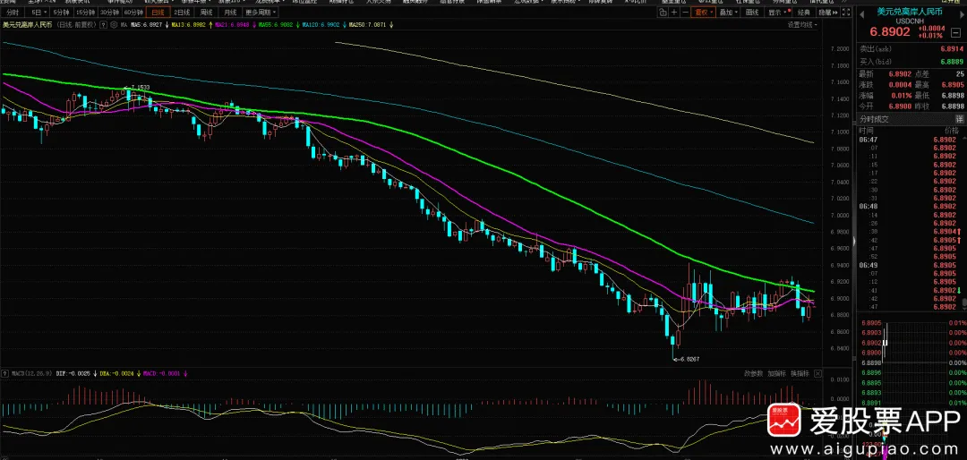 汇率6.89,低位小幅波动
