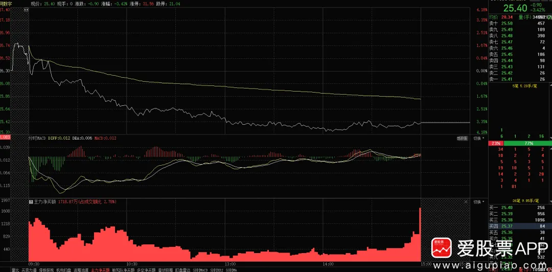 某网数字 电力统一大市场南网的核心标的。 昨天集合竞价高开,收盘跌3.4个点,但看看主力净买额全天红的,到收盘资金依然流入1718万,MACD分时多次底背离,是不是属于干跌?还是那句话,短线按短线纪律执行,长线按长线规则走。