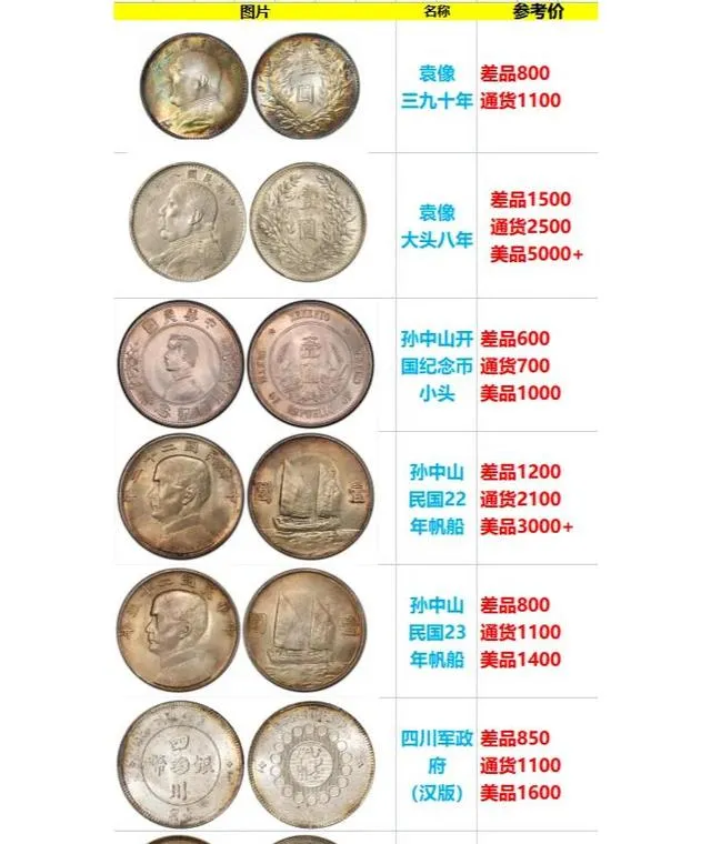 最后带大家看个孙小头、孙中山帆船银元,尤其那个22年船洋,记得小时候就有亲戚家拿着给我当“压岁钱”,通货两千出头,品相好的可翻倍,看着它船影浮动,就像把那个年代的风吹到眼前,街头巷尾都流传的老银货,现在还能见一两枚的,都是传家宝。