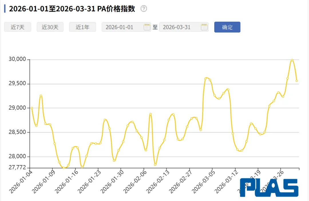 受此影响,价格指数全面拉升:ABS从约16700点升至17500点;PC从16500点低点冲高至20100点以上;PA重回30000点高位;PP从8000点震荡升至8500点以上。