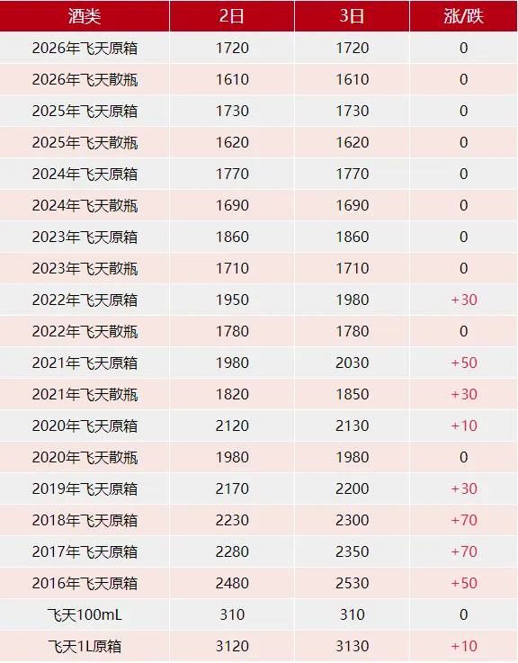 4月3日最新行情价▼行情价是指酒商之间的调货价,不同地方调货价有几十块的差异属正常现象。批发价/零售价=行情价+运营费用+仓储费用+物流费用+合理利润i茅台抢飞天茅台的规矩,最近又收紧了!i茅台将限购规则从“每日6瓶可分多单”调整为“每人每天仅限1单(单次1-6瓶),下单后当日无法再次抢购”,这直接限制了黄牛利用多个账号、多次下单进行批量扫货的操作空间。说白了,这就是不想让那些黄牛用一堆账号来回刷,想把酒留给真正想喝的人。对于普通消费者而言,新规则意味着在i茅台抢到平价飞天的难度增加,但公平性有望提升。