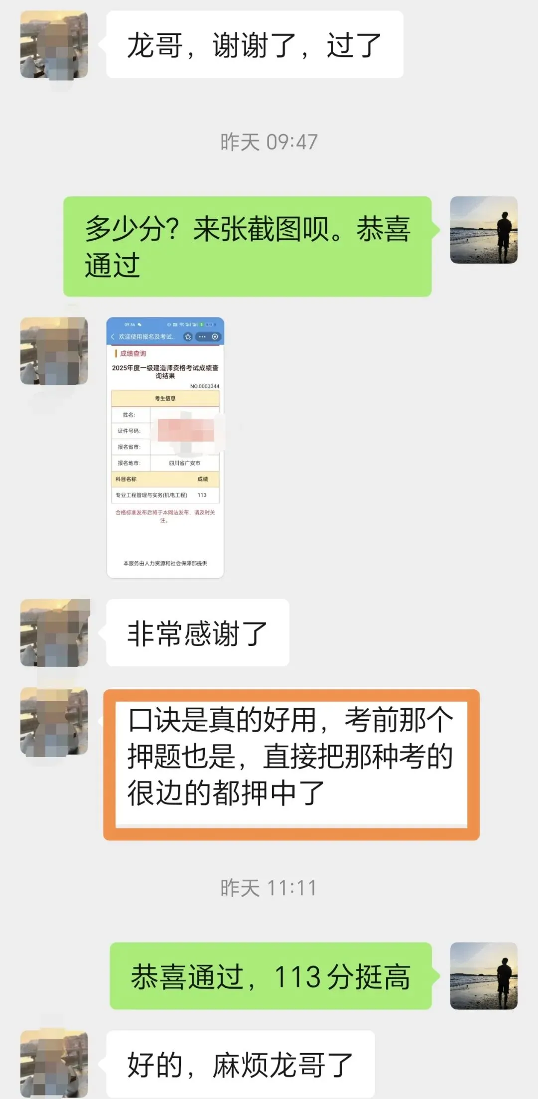 不是标题党,是4月3日最新行情。曾经火热的矿业报价已经有报2字头的单位了!明明挨最毒的打,背最黑的锅,结果还不如出个房建➕机电的组合。另外龙哥发现前两年特别火的水利也突然疲软,不仅价格暴跌,很多省份直接零需求,变得有价无市了。当然还有神化的某些小专业,都是只火了个把月,现在市场上一个要证的单位都没有!最后龙哥看来看去,得出结论还是房市机的组合有搞头,大家就围着这三个专业增项就对了,优先保证有机电才是王道!龙哥一建机电134分,真正的一次性过四科!致力于一建机电带学已经四年,有口诀超押学习班,通过学员503名。龙哥的方法是用关键字严格对应的口诀快速记住考点,龙哥原创口诀书740个考点对应800多条口诀。以点带面,逐渐扩大到全书3000考点的读记背,做到没有一分是咱们没学过的。高分需要学习效率!而学习效率就来自于独特的记忆技巧!———————————————————————————龙哥始终坚信真诚才是必杀技,用心、尽心、精心为同学们服务。加入口诀超押学习班,定不辜负你的信任!龙哥2022年机电实务134分,六个月一次过四科!