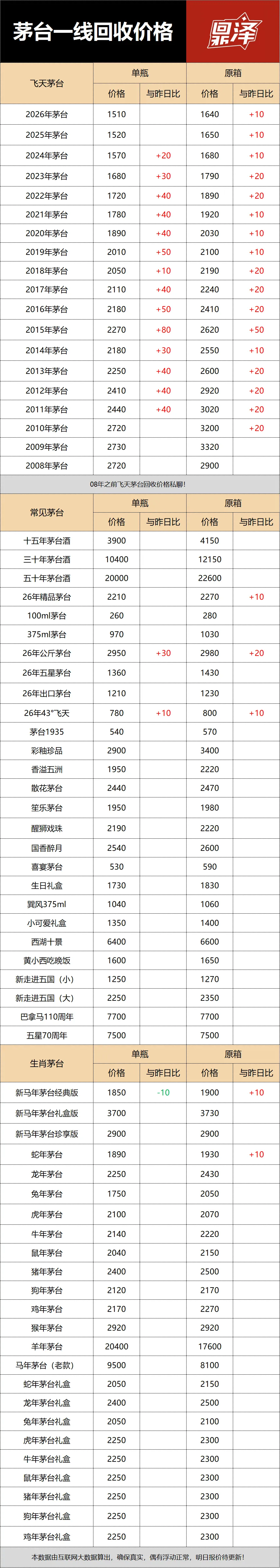 行情价:本公众号发布的价格是行情价格,是全国酒商调该品类茅台的价格,是零售价和回收价的基准价格。