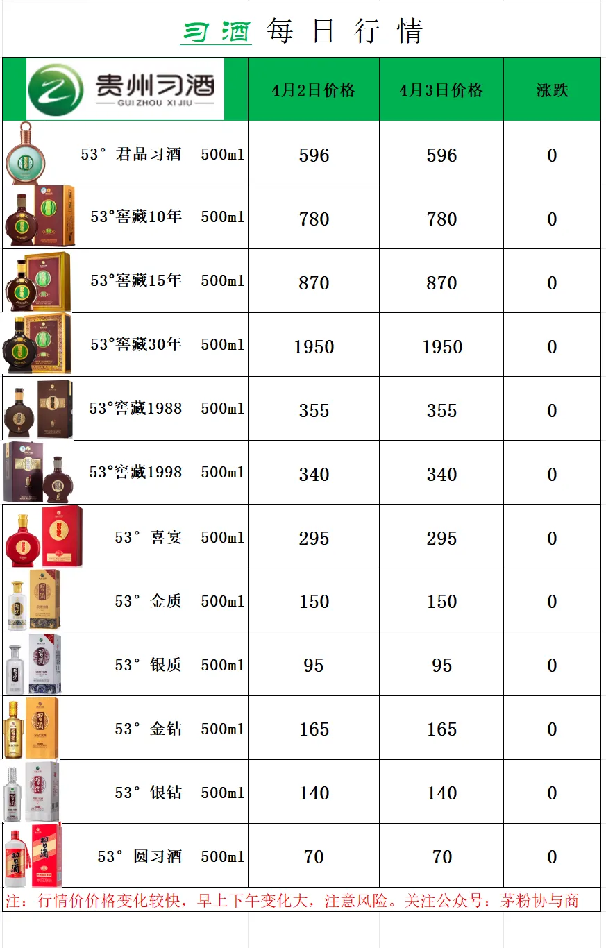 全线上涨;4月3日茅台酒行情(附回收价格)