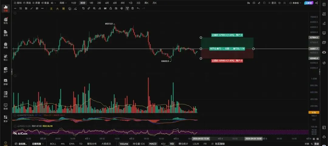 大饼带量突破66893右侧追多吃反弹,66253带量跌破反抽无法收回右侧追空,