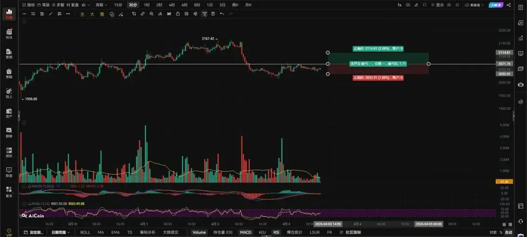 二饼带量突破2071右侧追多,收回止损。