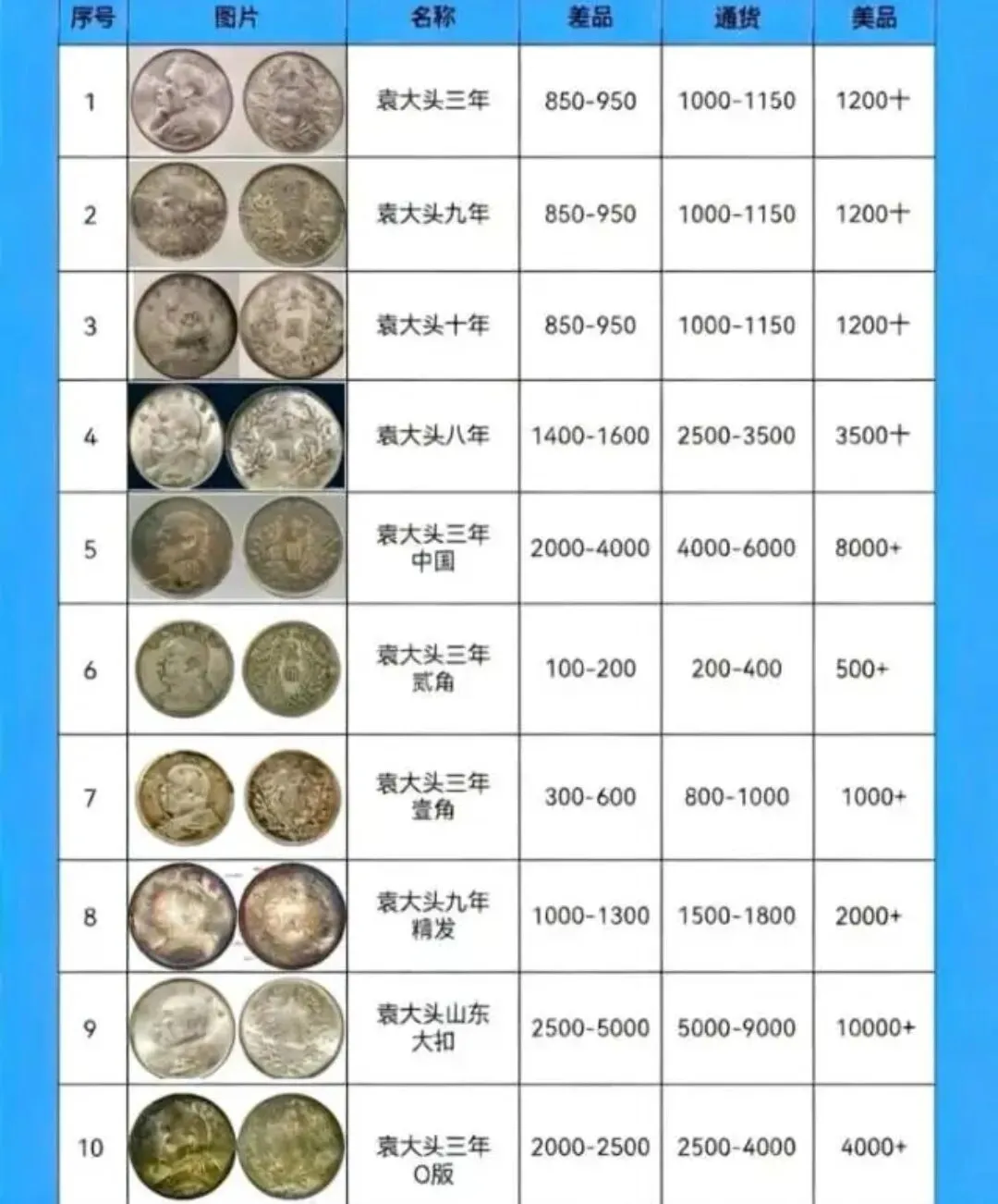 按此计算,一枚重26.8克的标准银元,仅白银原料价值就已接近490元。这意味着像普通“袁大头”这类品种,下方的支撑力非常足。