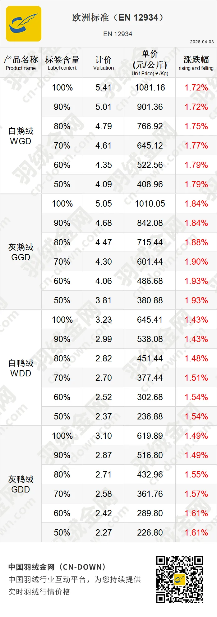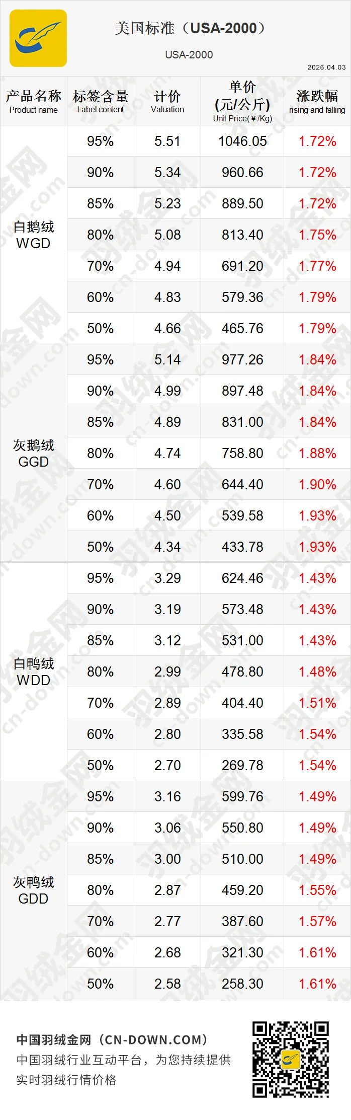 创建于2007年,逐步发展成为全球羽绒行情的风向标,是一家专注于羽绒行情价格发布的权威行业平台。作为中国羽绒行业的重要信息枢纽,羽绒金网持续提供实时精准的羽绒价格走势、市场行情分析和行业资讯为核心服务,覆盖羽绒产业链上下游的企业用户。
