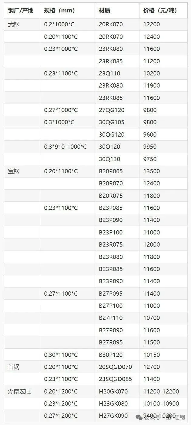 注:格表只展示部分硅钢牌号价格信息,另外本平台提供国内、国外钢厂各种牌号硅钢订购服务,了解更多请进入本站官网。