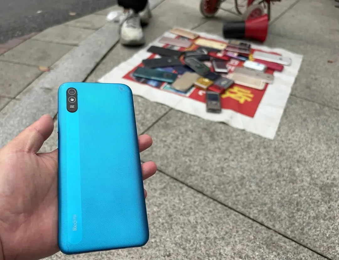 在摊位前,市民张女士正在出售一台型号为红米9A的旧手机,经过和回收商的讨价还价最终以100元成交。“刚刚路过小区门口,看到有回收废旧手机的就回家拿了这台废弃的红米9A手机出售。”张女士坦言,这台旧手机机龄已超过5年,当年买来也才500多元,后来屏幕裂了就丢抽屉里,已经很久没使用了,“原以为只能换个不锈钢脸盆,没想到还能卖100元。”