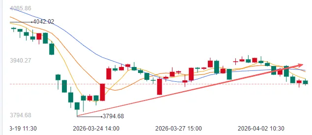 技术面分析:3794为最低点,反弹后,目前又破了上行趋势线,要下来做双底,3850有支撑,底部3850-3950100点震荡。