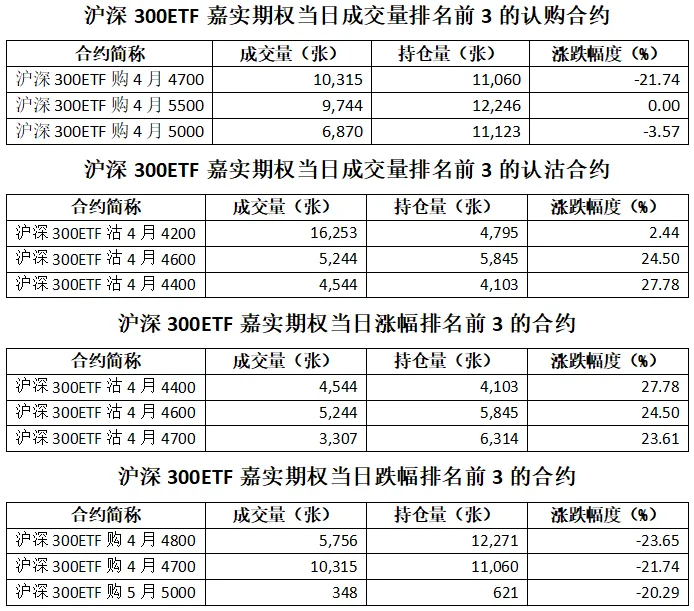 沪深300ETF嘉实期权总成交面额51.43亿元,增加14.11%,期现成交比为0.01,权利金成交额0.46亿元;期权总成交量107,080张,增加11.68%,其中认购期权成交量58,944张,认沽期权成交量48,136张,认沽认购成交比率为0.82(上一交易日认沽认购成交比率为1.23)。