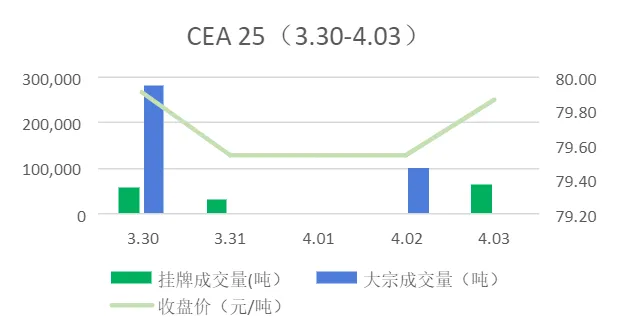 本周挂牌协议交易成交量147,378吨,成交额11,763,902.20元;大宗协议交易成交量380,000吨,成交额23,780,000.00元;本周无单向竞价。