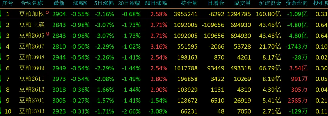 豆粕05期权剩14天,期货剩余27天。去年收2865,期现差-145,持仓110.8万,4月1日-9日涨(2790-2986)18日-24日涨(2834-3097)今收2844,期现差-187,持仓109.2万,缩量换手60%跌26点,增-11万,价格破60所有波动42点,连续跌6天,macd空头加强。收盘低于结算的阴线,前主力持续减仓。今日总结:缩量减仓下跌破均线k线未止跌,技术偏空加强,下方参考2800-2820有较强支撑,或许反复震荡。如将美伊以冲突后的溢价抹去,05前期的震荡区间2700-2800之间。需关注中旬库存的消耗和巴西大豆港口以及商检情况5、美伊以地缘冲突对宏观影响(原油影响生物柴油需求运费上涨等)以上内容仅供参考,不构成任何投资建议,市场有风险,投资需谨慎!