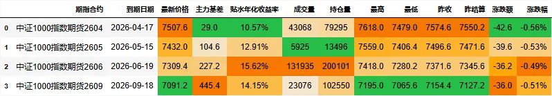 期指合约信息: