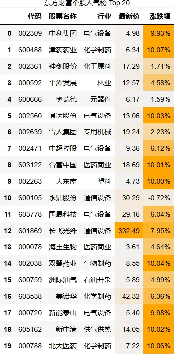东方财富个股人气榜