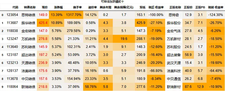 130以下低价转债涨幅中位值:0.01%