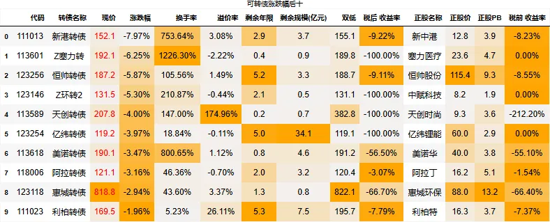 130以下低价转债涨幅平均值:-0.11%