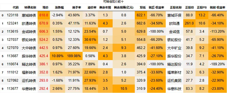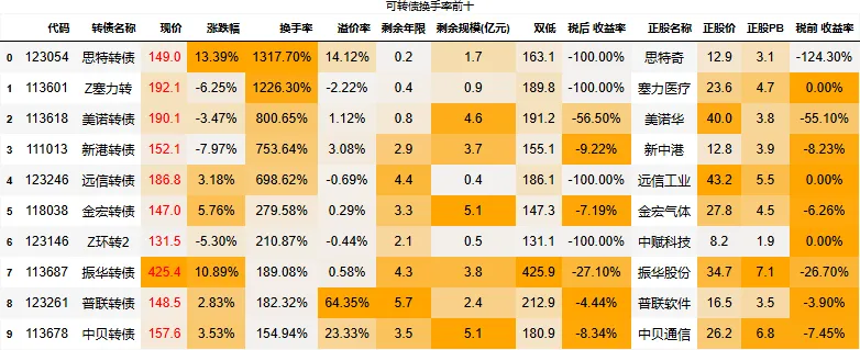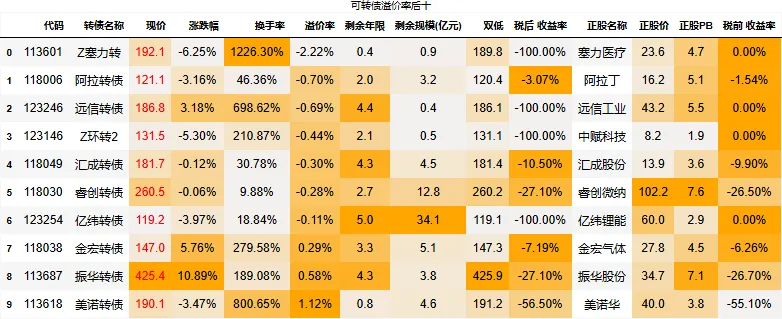 溢价率小于20的转债数量:74只