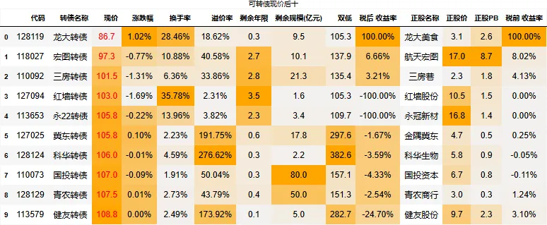 全市场剩下4只转债低于105