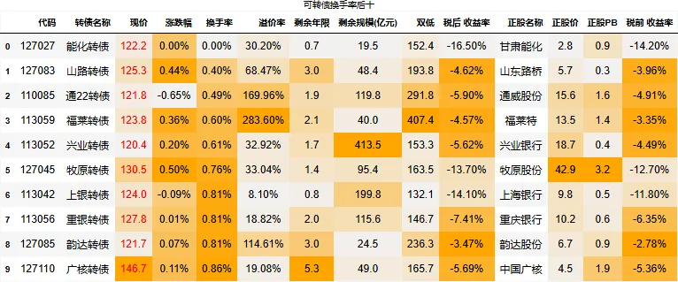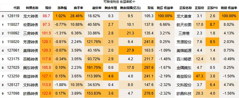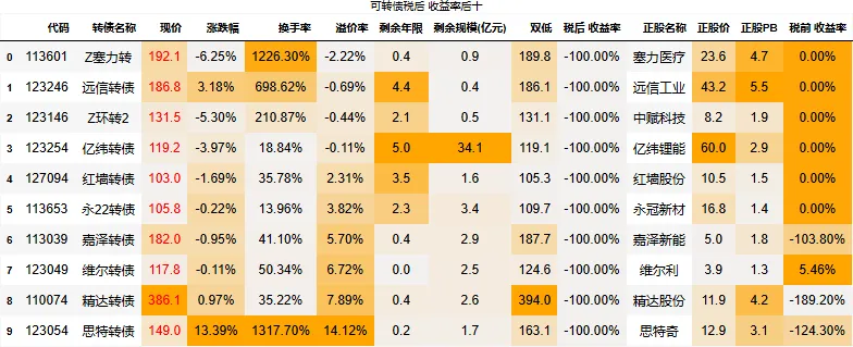 到期税后收益大于0的转债数量:4只