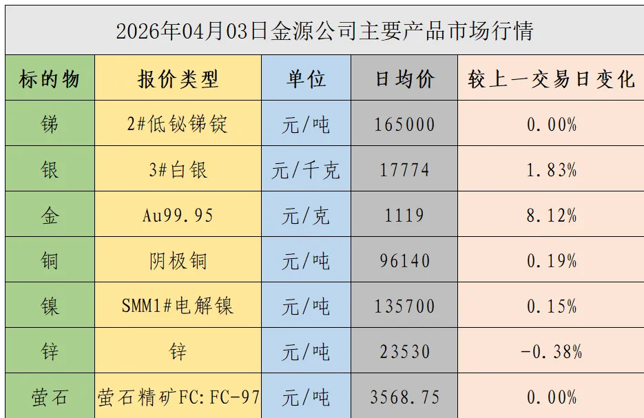 >今日行情|2026年4月3日金源公司主要产品市场行情